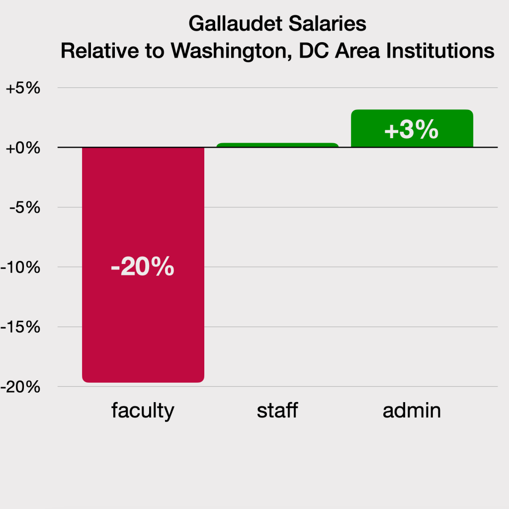 Gallaudet’s bilingual faculty earn 20% less than faculty at other Washington, DC area institutions, even though staff and admin are paid at or above par. Click here or on the image for the full article.