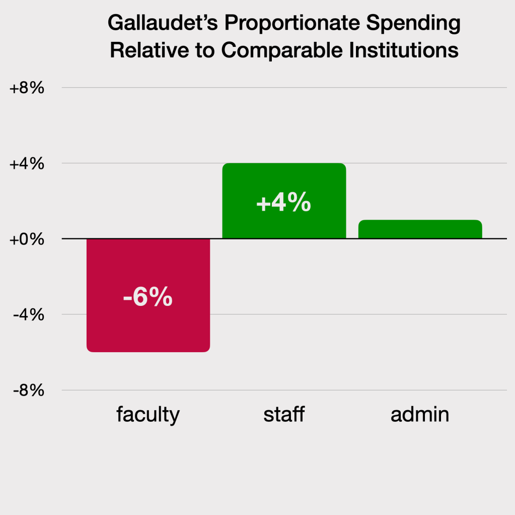 Gallaudet spends proportionately less on faculty and more on staff and admin than comparable universities. Click here or on the image for the full article.