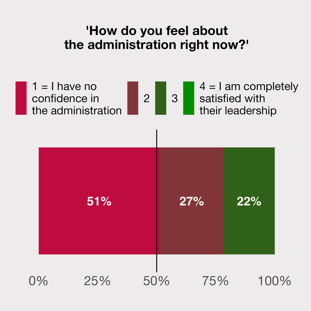 Survey results suggest that Gallaudet faculty have little to no confidence in the administration. Click here or on the image for the full article.